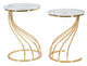 Modern megjelenésű lerakó kisasztal fekete és arany színekben. Az aranyszínű fém design váz, a fekete oldalborítás és az üveg asztallap elegáns kontrasztot teremt, exkluzív megjelenést biztosít a nappaliban vagy az előszobában.