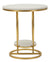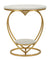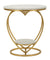 Különleges kisasztal szív alakú arany vázzal és márvány polcokkal. Egyedi kialakítása romantikus és kifinomult hangulatot varázsol a nappaliba, hálószobába vagy bármely elegáns enteriőrbe. Ideális dekorációs tárgyak, könyvek vagy kisebb kiegészítők elhelyezésére.