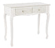 Vintage stílusú antikolt natúr Mangófa konzolasztal, két fiókkal, melyen leveles dekoráció található - Indian.