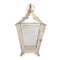 Antikolt dekoratív bézs felakasztható lámpás, fémből és üvegből, brocante stílusban. Ideális dekorációként otthonos estékre vagy a teraszra.Méret: 26x26x47 cmA gyertya nem része a terméknek.