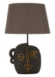 Ez az Absztrakt arc asztali lámpa kortárs, művészi hangulatot visz a lakásba. A fekete szobortalpon arany kontúrokkal megrajzolt stilizált arc jelenik meg, amely egyedi, modern art stílusú kiegészítővé teszi. A barna textilernyő meleg, otthonos fényt biztosít, nappaliba, hálószobába vagy inspiráló dolgozószobába ideális választás. Anyag: POLYRESIN , fém és textil Szín: barna és arany Méret: magasság: 39,5 cm, szélesség: 27,5 cm, mélység: 27,5 cm Frekvencia: 50Hz | Teljesítmény: 40 Watt Max | Foglalat: E27 | Izzók száma: 1