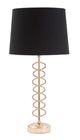 Ez a elegáns asztali lámpa a minimalist design és a sculptural forma tökéletes ötvözete. Az arany színű fém alapzat különleges csepp vagy könnycsepp alakot formáz koncentrikus drótokból, amelyek légies, átlátszó hatást keltenek. A geometrikus vonalvezetés modern kifinomultságot sugároz.