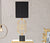 A fekete hengeres lampabúra klasszikus kontrasztot teremt az arany alapzattal, míg a fekete márvány vagy fém talp stabilizálja a konstrukciót és hangsúlyozza a monokróm elegancia érzését. A geometrikus vonalvezetés modern, art deco inspirációjú karaktert kölcsönöz a darabnak.