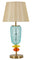 A Clarisse asztali lámpa elegáns és játékos kombinációja az arany, a kék és a borostyán tónusoknak. Kézzel fújt, domborított üveg teste egyedi textúrát és fénytörést biztosít, míg az arany színű fém talp és a natúr árnyalatú lámpabúra kifinomult megjelenést kölcsönöz a lámpának.