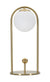 A Globe asztali lámpa letisztult és elegáns kiegészítő, amely a modern minimalizmust ötvözi a luxus stílussal. Arany színű, íves fémkeretében egy matt fehér üveggömb búra világít, amely lágy, hangulatos fényt biztosít. Ideális választás nappaliba, hálószobába vagy irodába, ahol a design és a funkcionalitás találkozik. Anyag: fém és üveg Szín: arany és fehér Méret: magasság: 47 cm, szélesség: 21 cm, mélység: 21 cm Frekvencia: 50Hz | Teljesítmény: 40 Watt Max | Foglalat: E14 | Izzók száma: 1