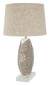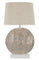 A Minta Kör asztali lámpa különleges, geometrikus mintázatú gyanta talppal készült, amely természetes hatásával harmonikus kiegészítője lehet bármely enteriőrnek. Bézs textilernyője meleg és lágy fényt áraszt, így ideális választás nappaliba, hálószobába vagy sk és ináv stílusú otthonba. Anyag: POLYRESIN , fém és textil Szín: arany és fehér Méret: magasság: 68 cm, szélesség: 38 cm, mélység: 38 cm Frekvencia: 50Hz | Teljesítmény: 40 Watt Max | Foglalat: E27 | Izzók száma: 1