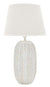 A Levélmintás asztali lámpa modern eleganciát és természetes hangulatot sugároz. Fehér-arany színű, részletgazdagon kidolgozott gyanta talpa levélmintával díszített, amely harmonikusan illeszkedik klasszikus és kortárs enteriőrökbe is. A fehér textilernyő lágy, otthonos fényt biztosít. Anyag: POLYRESIN , fém és textil Szín: arany és fehér Méret: magasság: 65 cm, szélesség: 35 cm, mélység: 35 cm Frekvencia: 50Hz | Teljesítmény: 40 Watt Max | Foglalat: E27 | Izzók száma: 1