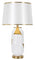 A Levélmintás asztali lámpa modern glamour hangulatot teremt otthonodban. Fehér-arany kerámia talpa finoman kidolgozott levélmintával díszített, amely fényűző eleganciát sugároz. A fehér lámpaernyő arany szegéllyel lágy fényt biztosít, így nappaliba, hálószobába vagy elegáns irodába is tökéletes választás. Anyag: kerámia, fém és textil Szín: arany és fehér Méret: magasság: 70 cm, szélesség: 40 cm, mélység: 40 cm Frekvencia: 50Hz | Teljesítmény: 40 Watt Max | Foglalat: E27 | Izzók száma: 1