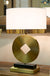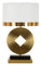 A Geometria asztali lámpa különleges formavilágával azonnal magára vonja a figyelmet. Arany kör alakú talpa közepén geometrikus kivágással modern eleganciát sugároz, míg a fehér lámpaernyő arany szegéllyel fényűző megjelenést biztosít. Ideális választás nappaliba, hálószobába vagy elegáns irodai enteriőrbe. Anyag: fém és textil Szín: arany és fehér Méret: magasság: 53 cm, szélesség: 30 cm, mélység: 30 cm Frekvencia: 50Hz | Teljesítmény: 40 Watt Max | Foglalat: E27 | Izzók száma: 1