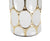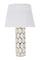 Az Opál asztali lámpa kifinomult eleganciát sugároz modern és klasszikus enteriőrökben egyaránt. Fehér-arany kerámia talpa különleges textúrával díszített, amely fényűző megjelenést kölcsönöz, míg a fehér lámpaernyő lágy, hangulatos fényt áraszt. Ideális választás nappaliba, hálószobába vagy akár elegáns irodába. Anyag: kerámia, fém és textil Szín: fehér és arany Méret: magasság: 56 cm, szélesség: 34,5 cm, mélység: 34,5 cm Frekvencia: 50Hz | Teljesítmény: 40 Watt Max | Foglalat: E27 | Izzók száma: 1