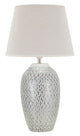 A Minta Ovál asztali lámpa különleges gyanta talpa geometrikus mintázattal díszített, amely modern és természetközeli hangulatot áraszt. Bézs textilernyője meleg, lágy fényt biztosít, így nappaliba, hálószobába vagy sk és ináv stílusú enteriőrbe is ideális választás. Látványos méretének köszönhetően fő dísze lehet a helyiségnek. Anyag: POLYRESIN , fém és textil Szín: arany és fehér Méret: magasság: 90 cm, szélesség: 38 cm, mélység: 38 cm Frekvencia: 50Hz | Teljesítmény: 40 Watt Max | Foglalat: E27 | Izzók száma: 1