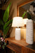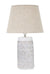 Textúrált asztali lámpa – fehér-barna polirezin talp, bézs ernyő, 60,5 cm