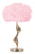 A Tollas asztali lámpa különleges és luxus hangulatot teremt bármely enteriőrben. Arany színű, hullámos formájú talpa eleganciát sugároz, míg a rózsaszín toll ernyő romantikus és játékos fényhatást biztosít. Tökéletes választás nappaliba, hálószobába vagy glamour stílusú otthonba. Anyag: fém és textil Szín: arany és rózsaszín Méret: magasság: 63 cm, szélesség: 40 cm, mélység: 40 cm Frekvencia: 50Hz | Teljesítmény: 40 Watt Max | Foglalat: E27 | Izzók száma: 1