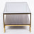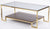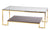 Elegáns és praktikus arany színű dohányzóasztal, üveg asztallappal, és alsó polccal.