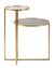 Modern és elegáns két szintes dohányzóasztal arany fém szerkezettel és füstüveg asztallapokkal, amely letisztult, geometrikus formavilágával különleges kiegészítője lehet bármely nappalinak. Az eltérő magasságú asztallapok praktikus elrendezést biztosítanak, így dekorációk, könyvek vagy italok elhelyezésére is ideális. Stílusos választás modern, glamour és klasszikus enteriőrökbe.