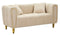 Krém színű kétszemélyes kanapé arany lábakkal, összeszerelhető – Steppelt bársony kárpittal, luxus és kényelem tökéletes kombinációja.