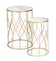 Ez egy elegáns aranyszínű fém kerek kis lerakó kisasztal, fekete üveglappal. Az arany szín és a fekete felületek a glamour egyik kedvenc megjelenítése. Fényűző és csillogó elem az otthonodba, amelyek a Hollywoodi csillogást idézik fel.