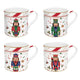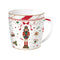 Nutcracker Twist karácsonyi porcelán bögre. A fehér porcelánt játékos diótörő és csíkos piros motívumok díszítik.