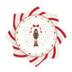 Nutcracker Twist karácsonyi porcelán fenyőfa tálca. A fehér porcelánt játékos diótörő és csíkos piros motívumok díszítik.