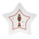 Nutcracker Twist karácsonyi porcelán tál 15 cm átmérővel. A fehér porcelánt játékos diótörő és csíkos piros motívumok díszítik.