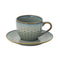 Modern megjelenésű porcelán füst szürke kávés csésze aljjal a Drops kollekcióból. A minőségi porcelánon domború csepp formák teszik különlegessé és elegánssá ezt az étkészletet.