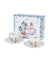 A 2 személyes szett két csészét és két alátétet tartalmaz, elegáns díszdobozban – így ajándéknak is kiváló. A minőségi porcelán anyag biztosítja a tartósságot és a kellemes használatot.
