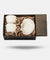 Modern porcelán csészes szett krém színben. A csészék domború díszítéssel és arany peremmel rendelkeznek. A készlet elegáns dobozba van csomagolva.