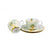 A csészék és a hozzá tartozó aljak minőségi porcelánból készültek, amelyet elegáns és természetes krémfehér szín jellemez. A csészék belsejét finom fényes felület jellemzi, és helyet kapott egy kis metszett is az alkotásból.