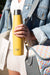Termosz, duplafalú rozsdamentes acél, sárga színben.