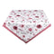 Vintage hangulatú bájos és romantikus rózsa mintás nyári asztalterítő: fehér alapon rózsaszín és piros rózsák segítenek a bűbájos hangulat megteremtésében az étkezőasztalnál.