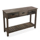 Ez a rusztikus barna fa konzolasztal egy igazi jellegzetes darab a lakberendezés világában. A kötél dekoráció és a három fiók tovább fokozza a bútor egyedi megjelenését.