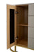 Lekerekített oldalas modern megjelenésű tálalószekrény 2 ajtóval és 4 fiókkal. Az aranyszínű fém váz, a fekete párnázott szövet borítás és a márvány hatású fa felsőrész tiszta és elegáns kontrasztot teremt, amely bármilyen bútortípussal kombinálható.