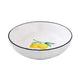 Ez a minőségi porcelán lapostányér nagy citromokkal díszített, barna szegéllyel, enyhén egyenletlen, különleges felülettel rendelkezik,