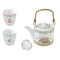 Húsvéti porcelán teáskanna 600 ml, fémszűrővel, 2 porcelán pohárral 160 ml, dobozban.