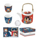 Porcelán teáskanna fém szűrővel, 2 db porcelán pohárral díszdobozban az olasz Easy Life Coffe Mania Marrakech kollekcióból.