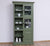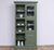 Vintage stílusú, tömör fa fenyőfából készült tálalószekrény két tolóajtóval és négy üveges tolóajtóval.