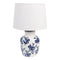 Kerámia asztali lámpa kék virágos fehér burával