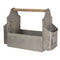 Vintage kerti fém szerszámosláda fa fogóval Garden Tool felirattal, három flakkal.