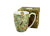 A bögrén kívül kavargó liliomokból és virágokból álló minta látható zöld alapon. A háttér karakteres színe a dekoráció visszafogott színeivel kombinálva különleges karaktert, stílust és eleganciát kölcsönöz a kollekciónak.