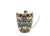 A bögre belül fehér porcelánból készült, egy finom virágmotívummal díszítve. Kívül egy kis rigó látható, aki epret lop a művészre jellemző leveles minta hátterében. Az eper lédús vöröse tökéletesen passzol az erős, sötétkék beállításhoz.