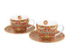 A porcelán bögrét belül egy rigó metszet díszíti. Kívül pedig a kis rigó látható, aki epret lop a művészre jellemző leveles minta hátterében.  A meleg bézs és a vörös elegáns kombinációja egyedi karaktert ad a kollekciónak.