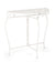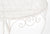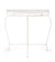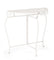 Antikolt fehér fém félkör alakú konzolasztal. Ez a bútordarab nem csak egy konzolasztal, hanem egy gyönyörű alkotás is, amely otthonodba idézi a múlt idők romantikus és bájos atmoszféráját.