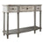 Antikolt, koptatott felületű vintage stílusú szürkés konzolasztal díszes kialakítással, faragott, elegáns lábazattal, 3 fiókkal. Stílusos és különleges bútordarab nappaliba, előszobába, irodába, folyosóra.Méretek: 120*38*85 cmAnyaga: faSzín: szürkés, antikoltA termék 3-5 hét szállítási idővel rendelhető.