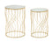 Modern és elegáns kisasztal szett arany fém vázzal és tükrös üveg asztallappal, amelyet különleges, hullámvonalas-geometrikus díszítés tesz egyedivé. Légies formavilága fényt és tágasság érzetét kelti, így ideális választás nappaliba, hálószobába vagy előszobába dekoratív kiegészítőként. Praktikus, ugyanakkor exkluzív bútordarab minden enteriőrbe.