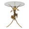 Arany színű fém lerakó kisasztal, virágos dekorációval, ívelt lábazattal. Stílusos kiegészítő otthonodba.
