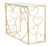 Modern megjelenésű konzolasztal arany színű design vázzal és tükrös üveglappal. Az aranyszínű fém design váz, és a tükrös asztallap és a szív kivágások elegáns kontrasztot teremtenek, exkluzív megjelenést biztosít a nappaliban vagy az előszobában.