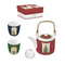 Karácsonyi mintás porcelán teáskanna (600 ml) fém szűrővel és 2 porcelán pohárral (160 ml) díszdobozban Festive Avenue.