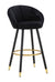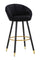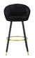 Modern bársony bárszék fekete kárpitozással, fa lábakkal és aranyszínű fém díszítéssel – elegáns és kifinomult választás minden enteriőrbe. A puha, bársonyos ülőfelület kényelmet biztosít, míg a kör alakú lábtartó és az arany részletek luxus hatást keltenek. Letisztult formavilága a modern és glamour stílus tökéletes ötvözete, ideális bárpult mellé, nappaliba vagy konyhaszigethez.
