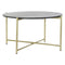 A Noemi modern dohányzóasztal elegáns kontrasztot teremt a fekete márványhatású asztallap és az aranyszínű, légies fémváz között. A minimalista, mégis luxus megjelenésű kialakítás tökéletes választás modern, glamour vagy art déco stílusú enteriőrbe.