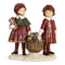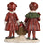 Piros ruhás gyerekek ünnepi kosárral vintage karácsonyi dekorációs figura.